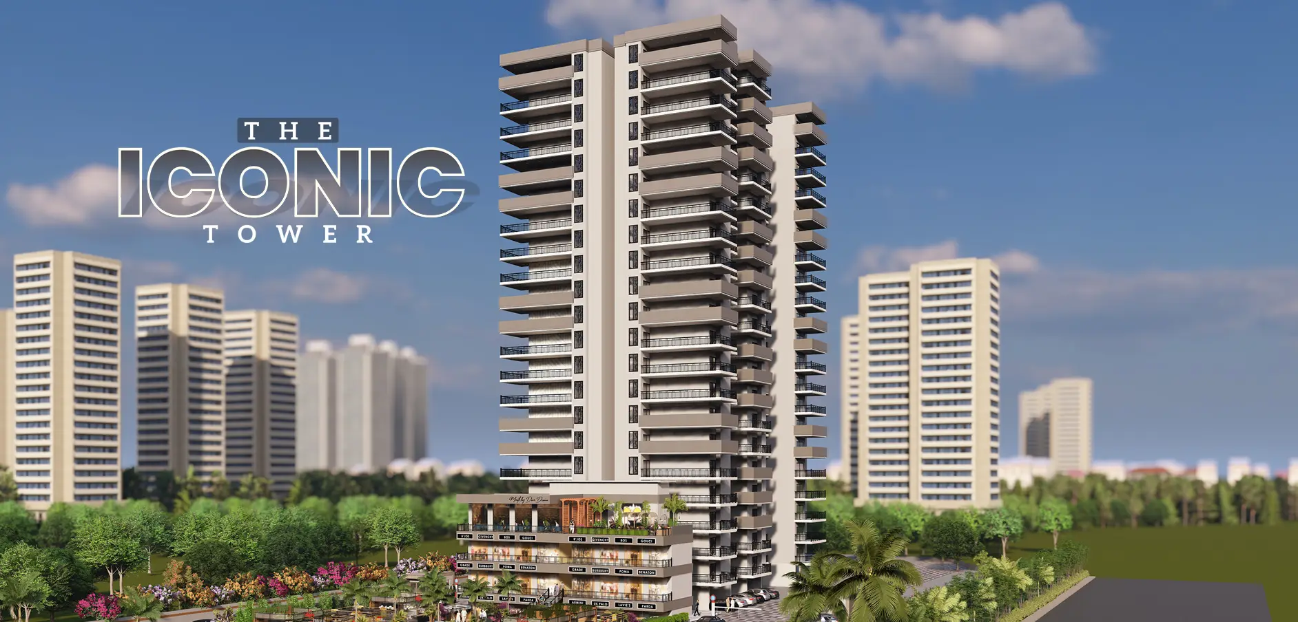 Iconic Tower is a striking 20-storey landmark in Raj Nagar Extension, perfectly positioned along the main road for exceptional visibility and easy access. It is home to Charms Square, a vibrant commercial hub teeming with energy and opportunity. Featuring modern architecture and panoramic views, Iconic Tower seamlessly integrates luxury living with dynamic business spaces, creating the ultimate urban experience.